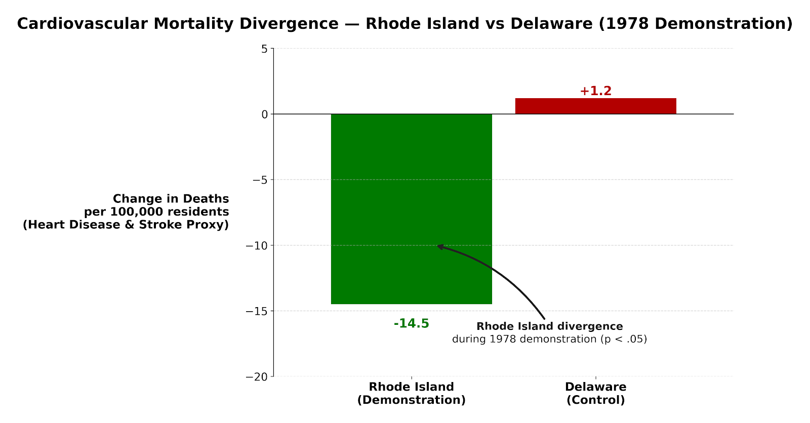 The study compared Rhode Island’s performance against Delaware—a matched control state with similar demographic and economic profiles—to determine if a group of practitioners could improve the “Quality of Life” (QOL) for an entire non-practising population.