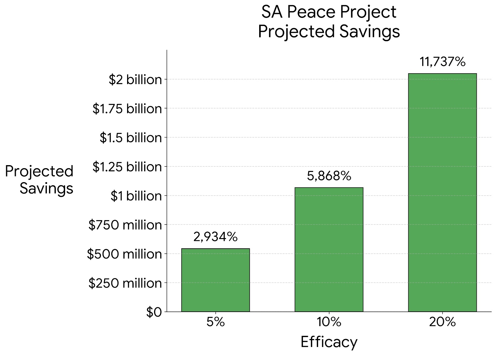 By applying the efficacy rates (5%, 10%, and 20%)—bench-marked against the results seen in the Rhode Island study—we can calculate the Avoided Cost and hence the savings for the SA State Budget.